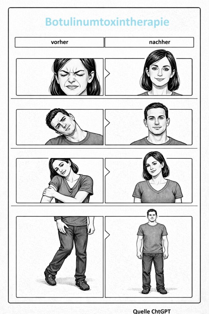 4) Spastik der Arme und Beine: Die Botulinumtoxintherapie kann bei Patientinnen und Patienten mit Spastik, z. B. nach einem Schlaganfall oder Schädel-Hirn-Trauma, helfen, Muskelkontraktionen zu reduzieren und die Funktion der betroffenen Extremitäten zu verbessern.